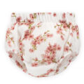 Bloomersy, spodenki  dziewczęce w kolorze ecru wykonane z wysokiej jakości bawełny organicznej. Bloomersy na całości posiadają uroczy wzór delikatnych kwiatów. Odpowiedni krój ubranka daje komfort noszenia, nie krępując ruchów dziecka. A guma w pasie utrzymuje ubranko we właściwym miejscu, nie uciskając przy tym brzuszka oraz nóg dziecka. Dzięki przewiewnej organicznej bawełnie doskonale sprawdzą się w upalne dni lata.