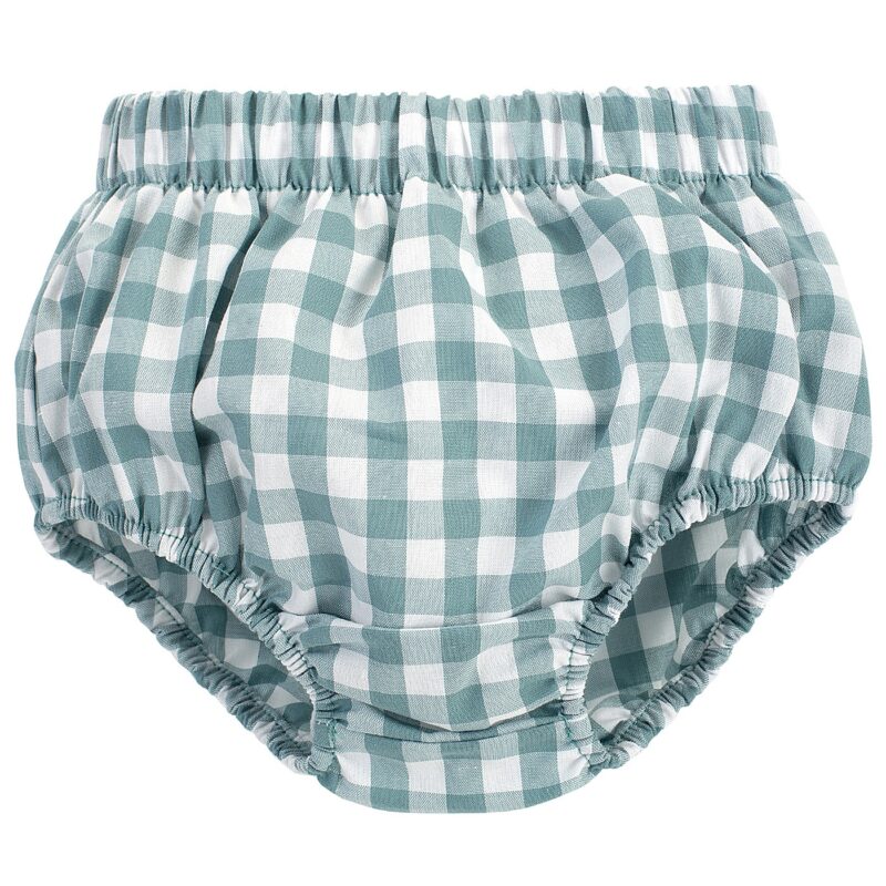 Bawełniane bloomersy w kolorze zielono – białej kratki.