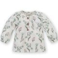Dziewczęca bluzka z długim rękawem w piękny, autorski wzór kwiatków. Nadruki wykonano bezpieczną metodą farb wodnych, która zapewnia im trwałość nawet po wielu praniach. Rękawki mają ciekawe marszczenie na dole, które nadaje im efekt lekkich bufek. Bluzka jest rozpinana z przodu na trzy, drewniane guziki. Dzięki takiemu rozwiązaniu początkującym rodzicom dużo łatwiej będzie ubrać i rozebrać maluszka. Nasza bluzka doskonale sprawdzi się na wiele okazji: do przedszkola, na przyjęcie, występy lub podczas codziennej zabawy. Możesz ją dowolnie łączyć z pozostałymi ubrankami z kolekcji My Garden.