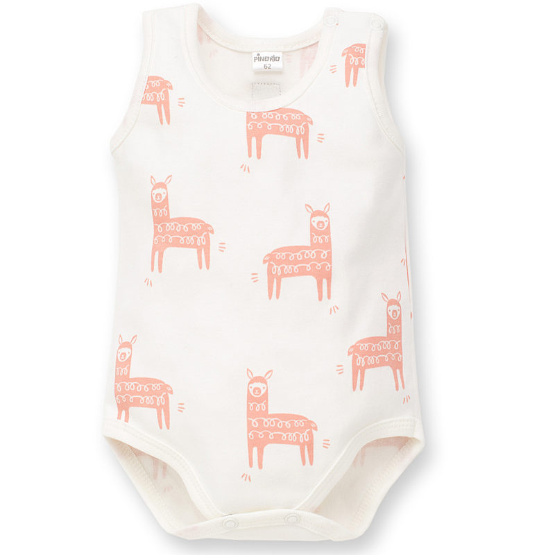 Wykonane ze 100% bawełny body na ramiączkach w kolorze écru. Na lewym ramiączku oraz u dołu rozpinane bezniklowymi napkami, ułatwiającymi ubieranie i rozbieranie dziecka. Nadruk w wzorze modnej lamy wykonany został metodą farb wodnych, bezpiecznych dla dziecka. Body można łączyć z innymi ubrankami z kolekcji Happy LLama, tworząc różne stylizacje.