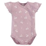 Body posiada nadruk uroczych wisienek z napisem SWEET, wykonany bezpieczną metodą farb wodnych. Rękawki posiadają marszczenie. Ubranko rozpinane jest na całej długości na bezniklowe napy co ułatwia bardzo ubieranie i przewijanie dziecka. Takie body to niezbędny element wyprawki małej dziewczynki.