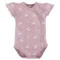 Rozpinane bawełniane body niemowlęce w kolorze różowym z nadrukiem.