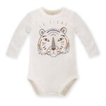 Body bawełniane z długim rękawem w kolorze ecru w delikatne czarne kropki. Całość jest rozpinana na bezpieczne bezniklowe zatrzaski to bardzo ułatwia przebieranie dziecka. Miękka przyjemna bawełna zapewni dziecku komfort podczas codziennych aktywności. Doskonale komponuje się z pozostałymi ubrankami kolekcji Tres Bien.