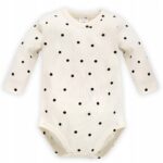 Body bawełniane z długim rękawem w kolorze ecru. Ubranko posiada z przodu motyw kwiatka w doniczce oraz delikatny napis „Belle Journée”. Całość jest rozpinana na bezpieczne bezniklowe zatrzaski to bardzo ułatwia przebieranie dziecka. Miękka przyjemna bawełna zapewni dziecku komfort podczas codziennych aktywności. Doskonale komponuje się z pozostałymi ubrankami kolekcji Tres Bien.