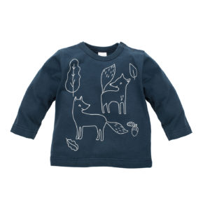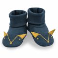 Granatowe buciki niemowlęce z uroczą aplikacją lisków z uszkami. Wykończone szerokim, wywijanym ściągaczem. Bardzo dobrze trzymają się dziecięcej stopy, ale jej nie uciskają. Buciki można dowolnie łączyć ze wszystkim ubrankami z kolekcji Secret Forest, tworząc ciekawe stylizacje dla maluszka.
