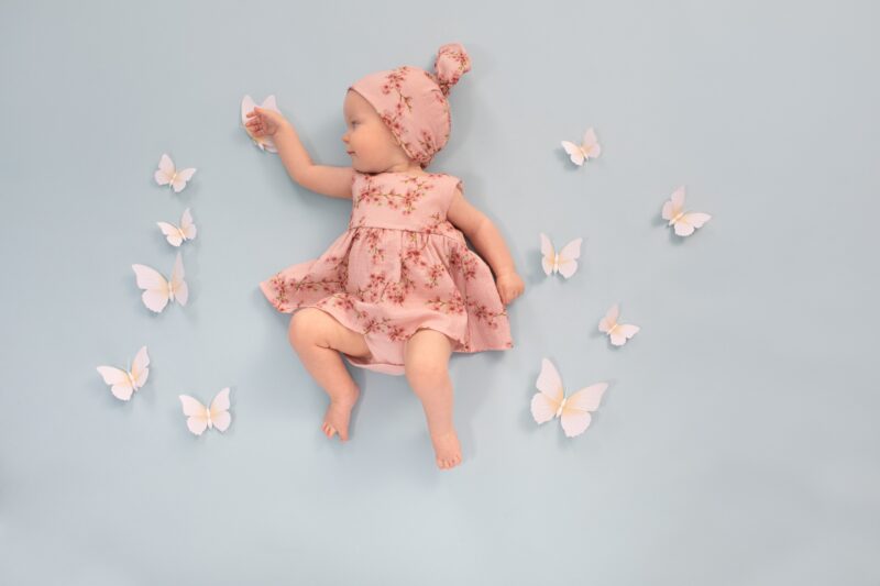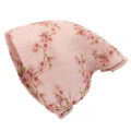 Chustka na głowę dla dziewczynki w kolorze przygaszonego różu, wykonana z wysokiej jakości bawełny organicznej. Chustka na całości posiada wzór uroczych delikatnych kwiatów. Z tyłu wszyto gumkę, dzięki czemu chustka dobrze przylega do głowy dziecka, ale jej nie uciska. Uszyta z przewiewnej organicznej bawełnianej doskonale ochroni głowę dziecka przed słońcem.