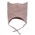 Czapka wiązana w kolorze beżowym wykonana z wysokiej jakości 100% bawełny. Czapka jest dwuwarstwowa dlatego dobrze sprawdzi się na chłodniejsze dni, doskonale chroni uszy dziecka przed wiatrem. Po lewej stronie umieszczono naszywkę z napisem BE BRAVE. Czapka dobrze przylega do główki, dodatkowo wiązana jest na dwa sznureczki. Na czubku znajdują ozdobne dwie wypustki, które dodają jej uroku.