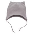 Czapka niemowlęca wiązana, wykonana z wysokiej jakości 100% bawełny. Czapka jest dwuwarstwowa, wiązana na dwa sznureczki, miękka przyjemna w dotyku. Na czubku znajdują się uszka, które dodają jej uroku. Idealnie sprawdzi się na spacery w chłodniejsze dni oraz jako czapka po kąpieli.