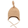 Czapka niemowlęca wiązana w kolorze jasnego brązu.