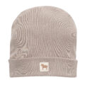 Czapka niemowlęca w beżowym kolorze. Wykonana z wysokiej jakości 100% bawełny. Jednowarstwowa elastyczna czapka wykonana z miękkiej przyjemnej bawełny doskonale dopasowuje się do głowy dziecka. Czapka posiada ozdobne wywinięcie, na którym umieszczono delikatną naszywkę z motywem konika, która dodaje jej uroku. Idealnie nada się na wiosenno-jesienne spacery jak i czapka po kąpieli. Warto o niej pamiętać kompletując wyprawkę.