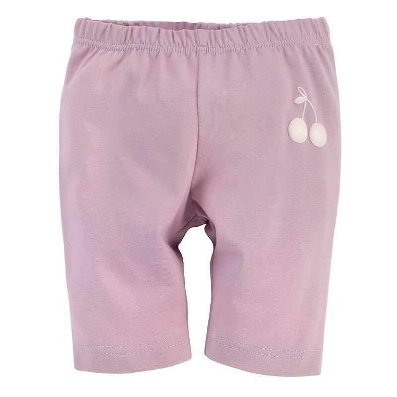 Leginsy posiadają po lewej stronie nadruk wisienek wykonany bezpieczną metodą farb wodnych. Wykonane z wysokiej jakości bawełny 95% oraz elastan 5%. W pasie wszyta jest gumka, która utrzymuje ubranko we właściwym miejscu, ale nie uciska dziecka w brzuszek. Odpowiedni krój zapewnia komfort noszenia i nie krępuje ruchów. Doskonałe na ciepłe wiosenno – letnie dni.
