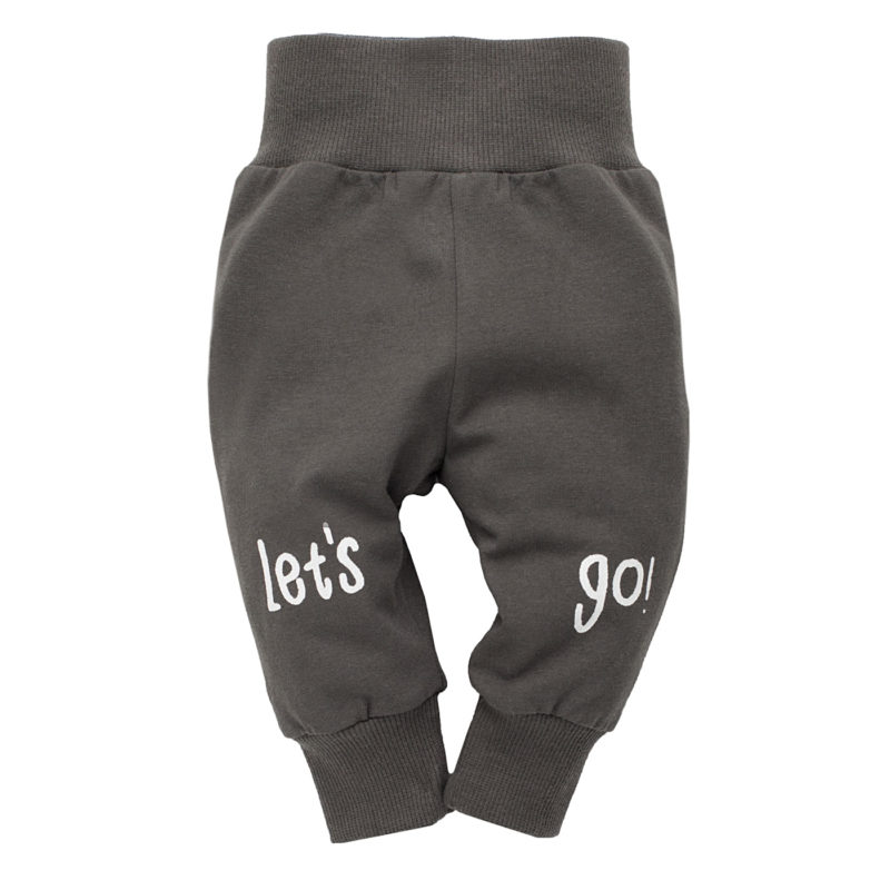 Leginsy chłopięce, na kolankach ozdobione beżowym napisem Let’s go! lub nadrukowanym motywem starodawnych aut. Wygodę i komfort dziecka zapewnia specjalnie zaprojektowany krój spodenek. W pasie i na nogawkach znajdują się szerokie ściągacze, które nie uciskają i ładnie utrzymują ubranko na ciele dziecka. Leginsy idealnie pasują do bodów, bluzeczki, bluzy i kamizelki z kolekcji.