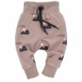 Beżowe komfortowe legginsy z nadrukiem w wzór gór i chmórek. Nadruk wykonano bezpieczną metodą farb wodnych, która zapewnia im trwałość nawet po wielu praniach. Szeroki, nieuciskający ściągacz w pasie, utrzymuje ubranko na miejscu. Legginsy mają obniżony krok, dzięki czemu są luźniejsze i dają dziecku więcej swobody ruchów. Od rozmiaru 74 wszyta jest dodatkowo wygodna gumka. Ozdobne sznureczki umożliwiają regulację szerokości w pasie. Nogawki leginsów wykończone zostały ściągaczem, jest to bardzo praktyczne rozwiązanie dla maluchów. Doskonale komponują się z pozostałymi ubrankami kolekcji Dreamer.