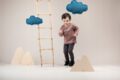 Grafitowe legginsy w nadruk małych księżycy. Nadruk wykonano bezpieczną metodą farb wodnych, która zapewnia im trwałość nawet po wielu praniach. Szeroki, nieuciskający ściągacz w pasie, utrzymuje ubranko na miejscu. Od rozmiaru 74 wszyta jest dodatkowo wygodna gumka. Ozdobne sznureczki umożliwiają regulację szerokości w pasie. Odpowiedni krój zapewnia dziecku komfort noszenia i nie krępuje ruchów podczas nauki raczkowania, chodzenia czy zabawy. Nogawki leginsów wykończone zostały ściągaczem, jest to bardzo praktyczne rozwiązanie dla maluchów. Doskonale komponują się z pozostałymi ubrankami kolekcji Dreamer.