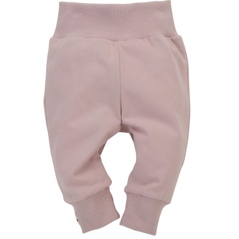 Leginsy dziewczęce w kolorze przygaszonego różu. Wykonane z wysokiej jakości bawełny 95% oraz elastan 5%. Spodnie posiadają ściągacze w pasie i na dole nogawek utrzymują ubranko na miejscu podczas zabawy, nauki raczkowania, chodzenia. Od rozmiaru 74 w pasie wszyta jest wygodna, nieuciskająca gumka. Na prawej nogawce na dole umieszczono ozdobną naszywkę z kwiatkiem. Takie Leginsy to niezbędny element wyprawki każdej małej dziewczynki.