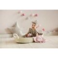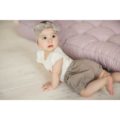 Opaska dla dziewczynki w kolorze brązowym we wzór drobnych kwiatków, to modny element wiosenno-letnich stylizacji. Z przodu umieściliśmy ozdobna kokardkę, która dodaje jej uroku. Opaska i kokarda to dwa osobne elementy. Opaska dobrze przylega do głowy dziecka, ale jej nie uciska. Można ją dowolnie łączyć ze wszystkim ubrankami z kolekcji Tiny Flowers, tworząc ciekawe, wakacyjne zestawy. Opaska, podobnie jak wszystkie ubranka Pinokio, ma certyfikat „Bezpieczny dla dziecka”.