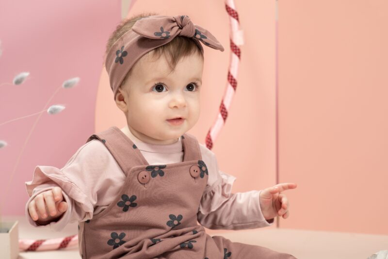 Opaska niemowlęca w kolorze ciemnego różu z motywem kwiatków w stylu retro. Wykonana z wysokiej jakości bawełny 95% oraz elastan 5%. Nadruk wykonano bezpieczną, trwałą metodą farb wodnych. Z przodu umieszczono ozdobną kokardę. Kokarda jest oddzielnym elementem dlatego można ją wiązać, przesuwać w dowolne miejsce. Doskonale pasuje do chusty Happiness ciemny róż. Opaska uzupełni świetnie stylizację małej dziewczynki jak i ochroni uszy przed wiatrem.