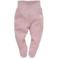Półśpiochy niemowlęce w kolorze różowym, wykonane z wysokiej jakości 100% bawełny. Z przodu ubranka po lewej stronie umieszczono naszywkę z napisem „Hello!. W pasie umieszczono szeroki ściągacz, który utrzymuje półśpiochy w odpowiednim miejscu nie uciskając przy tym brzuszka. Odpowiedni krój ubranka zapewnia komfort noszenia nie krępując ruchów dziecka. Gumki wszyte z tyłu nad piętami uniemożliwiają zsuwanie się ubranka ze stópek dziecka. Takie półśpiochy to niezbędny element wyprawki każdego dziecka.