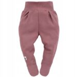 Półśpiochy bawełniane w karmelowym odcieniu. Półśpiochy w pasie mają wszyte ozdobne marszczenia a na prawej nogawce w dolnej części umieszczono delikatną naszywkę z motywem czarnej gruszki. Nad piętkami wszyto dodatkowo gumki, które zapobiegają zsuwanie się półśpiochów ze stópek. Odpowiedni fason oraz przyjemna miękka bawełna zapewnią dziecku komfort podczas noszenia. Doskonale komponują się z pozostałymi ubrankami kolekcji Tres Bien.