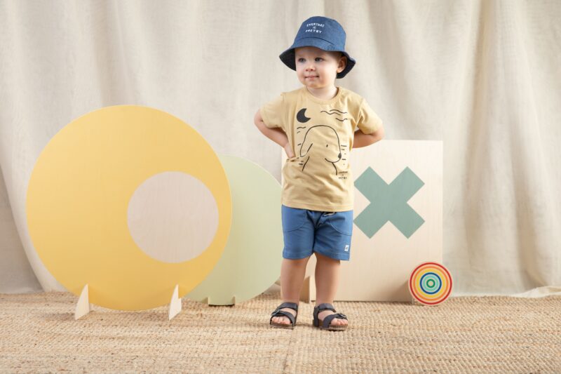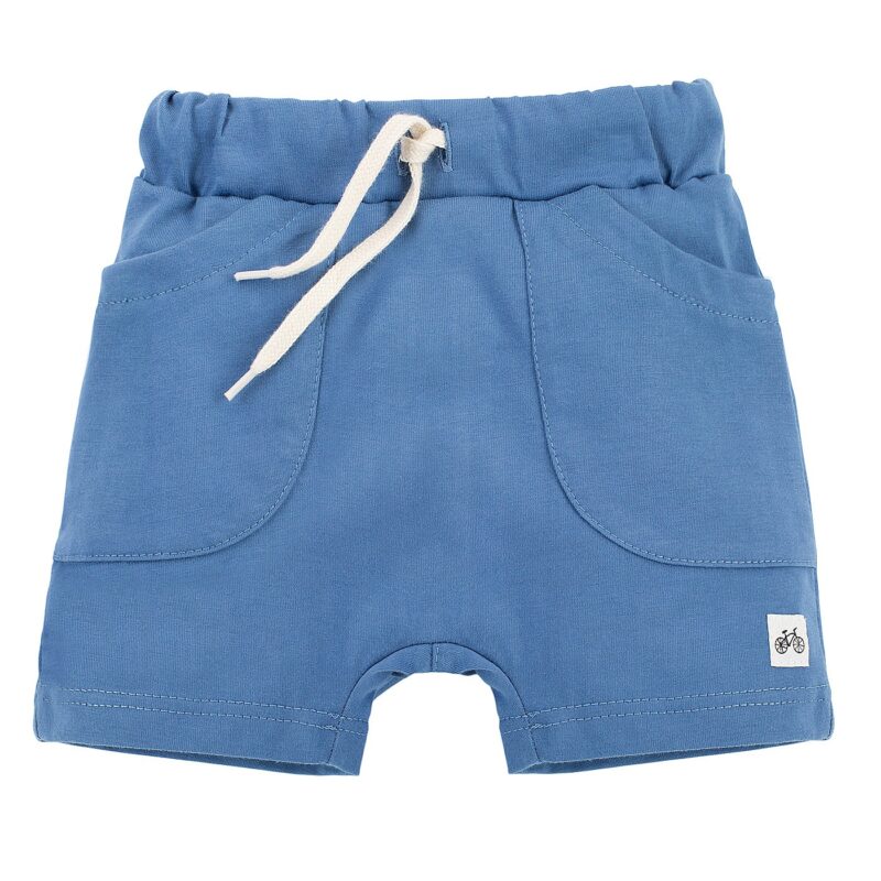 Krótkie spodenki chłopięce wykonane z wysokiej jakości 100% bawełny. Spodenki posiadają dwie kieszonki po bokach, idealne na dziecięce skarby. Na lewej nogawce umieszczono naszywkę z rowerem. Swobodny krój spodenek zapewnia dziecku komfort noszenia i nie krępuje ruchów podczas codziennych aktywności. W pasie wszyta jest nieuciskająca guma, która utrzymuje ubranko we właściwym miejscu, a kremowe sznureczki umożliwiają regulację szerokości w pasie.