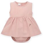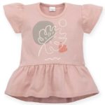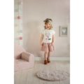 Różowa spódniczka dziewczęca z lekko gniecionej 100% bawełny. Ozdobna falbanka dodaje jej uroku i zwiewności. Idealna na wiosnę i lato. Z przodu, po lewej stronie umieściliśmy małą naszywkę z szarym kwiatkiem. W pasie wszyta jest gumka, która utrzymuje ubranko w odpowiednim miejscu, ale nie uciska w brzuszek. Luźny fason nie krępuje ruchów dziecka i zapewnia komfort noszenia. Spódniczkę można dowolnie łączyć z innymi ubrankami z kolekcji Tiny Flowers, tworząc unikatowe stylizacje. Warto o niej pamiętać kompletując letnią garderobę.