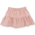 Różowa spódniczka dziewczęca z lekko gniecionej tkaniny bawełnianej, z ozdobną falbanką.