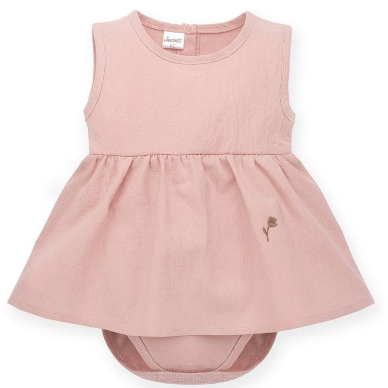 Różowa sukienka na ramiączkach z body, to wygodne i eleganckie rozwiązanie na letnio-wiosenne upały. Górna część ubranka oraz sukienka uszyte są z modnej w tym sezonie, lekko gniecionej, bawełnianej tkaniny. Dolna część to wygodna w użytkowaniu, rozciągająca się dzianina bawełniana, typowa dla wszystkich body Pinokio. Z przodu po lewej stronie znajduje się brązowy, haftowany kwiatek. Z tyłu na wysokości karku oraz w kroku umieściliśmy bezpieczne, bezniklowe zatrzaski, dla wygodniejszego ubierania i przewijania dziecka. Sukienka Tiny Flowers sprawdzi się idealnie podczas wiosenno-letnich wyjazdów, zabaw oraz spacerów. Warto o niej pamiętać kompletując wakacyjną garderobę maluszka.