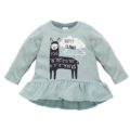 Mięciutka i wygodna tunika w kolorze zielonym, z uroczą, szeroką falbaną, oraz nadrukiem wesołej lamy.