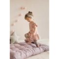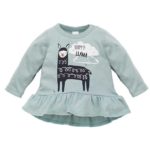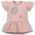 Różowa tunika dziewczęca z ozdobną falbanką u dołu i rękawkami z marszczeniem. Z przodu umieściliśmy nadruk z liściem, wykonany bezpieczną metodą farb wodnych, który zapewnia im trwałość, nawet po wielu praniach. W rozmiarach 68-92, na lewym ramieniu, znajdują się wygodne zatrzaski, które ułatwiają ubieranie dziecka. Do ich produkcji użyto tworzywa bez dodatku niklu. Tunika będzie tworzyła wiele ciekawych stylizacji z pozostałymi ubrankami z kolekcji Tiny Flowers. Warto o niej pamiętać kompletując letnią garderobę dla dziecka.